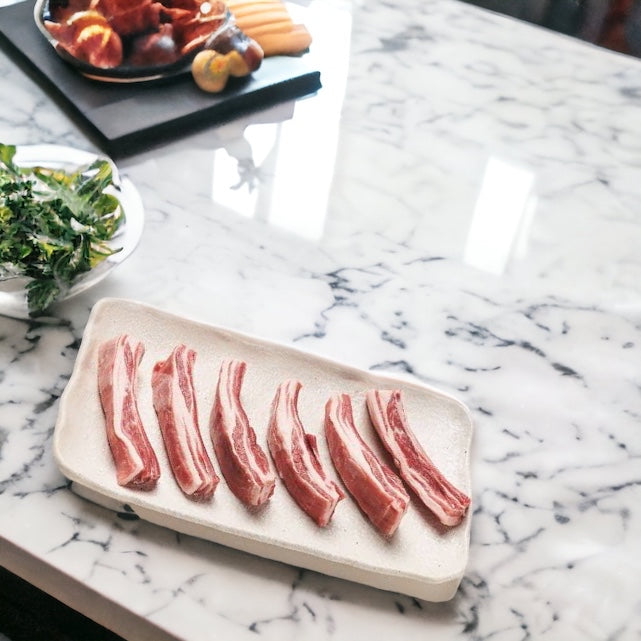 Lamb spare ribs are a cut of meat that comes from the rib section of a lamb. They are larger and meatier than the rack of lamb and are known for their rich flavour and juicy texture.
