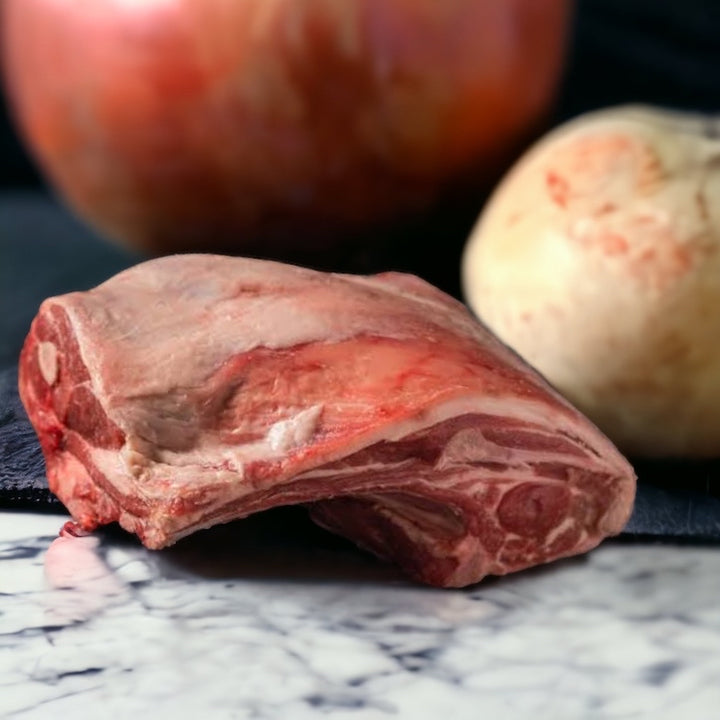 Cut and Location: Lamb shoulder is taken from the shoulder area of the lamb. It consists of the front leg, blade bone, and surrounding meat. This cut is known for its generous marbling of fat, which contributes to its rich flavour and tender texture.